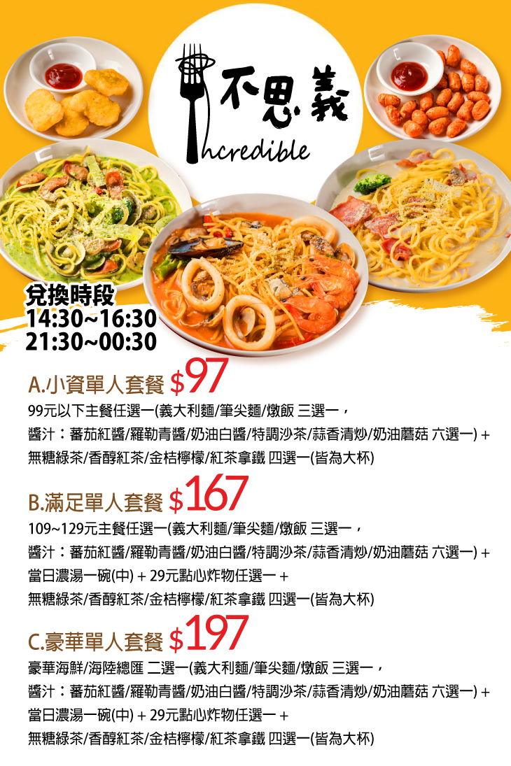 本次推出超值專屬優惠,下午茶、消夜限定!好康不常有,想把握一波就趁現在喲!