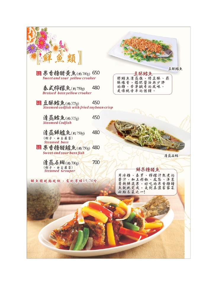 ※菜色內容依季節時令調整,實際菜色、價目依現場提供為主。