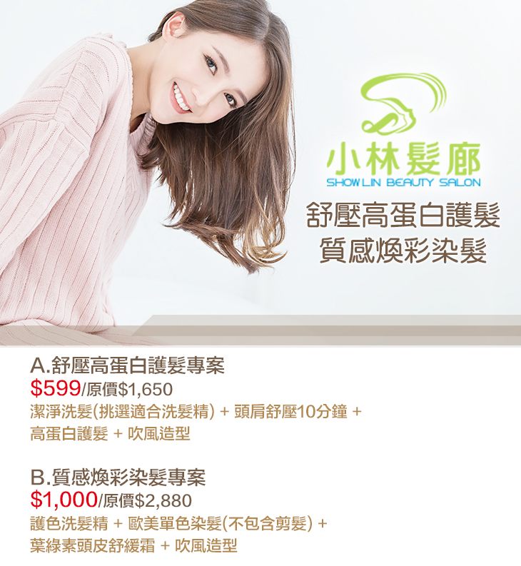 【小林髮廊】雖然沒有華麗亮眼的裝潢,但卻秉持著要為每位顧客創造愉快的消費經驗,以熱忱的服務、專業的技術,贏得顧客的信賴與支持。並且不斷創新髮藝技術,期許讓亞洲的愛美人士,都能享受到小林髮廊真誠與關懷的專業服務。