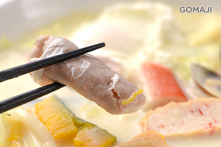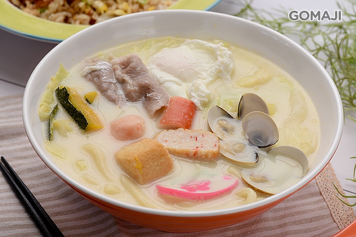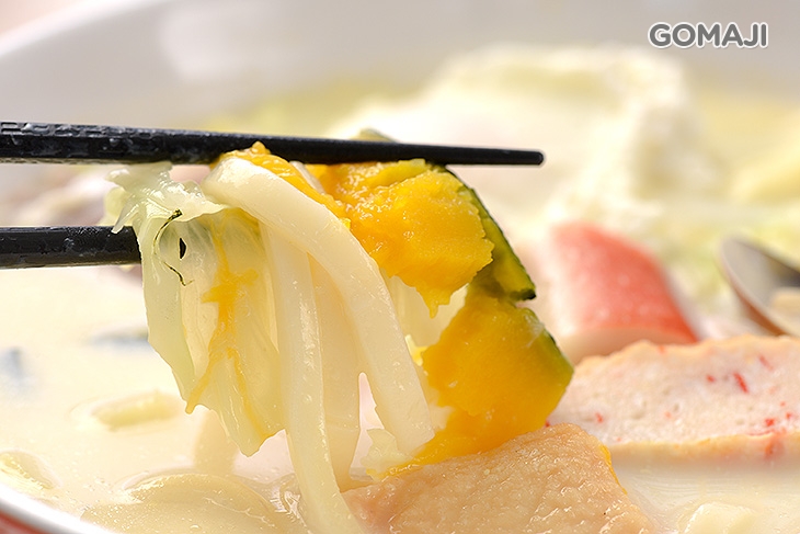 南瓜、牛奶,兩種香甜醇厚的風味結合在一塊,奶黃色的湯水飄散著濃、純、香的氣息,讓人光是聞其香,便垂涎三尺!各樣豐盛的配菜佐料,讓整碗鍋燒色香味俱全,細細品嚐,牛奶與南瓜專屬的溫潤濃厚使每一種食材都充滿馥郁香氣,暖和潤腸的溫柔風味、料多實在的份量,真是讓人愛不釋口!