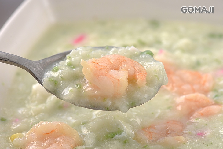 彈牙紮實的蝦球,精心點綴在米白色的濃醇粥品上,有如雪中紅般的景致十分賞心悅目。趁熱品嚐,煮得濕潤的粥品軟而不爛、溫熱潤胃,滑順的口感之中,還能咀嚼到顆顆白米的鬆軟,豐富的配菜佐料,替清湯掛麵的白粥添抹了風味層次,滋味是淡雅迷人、料多味美!冷冷的天肚子餓了,來一碗暖和的一品蝦球粥最對味了!