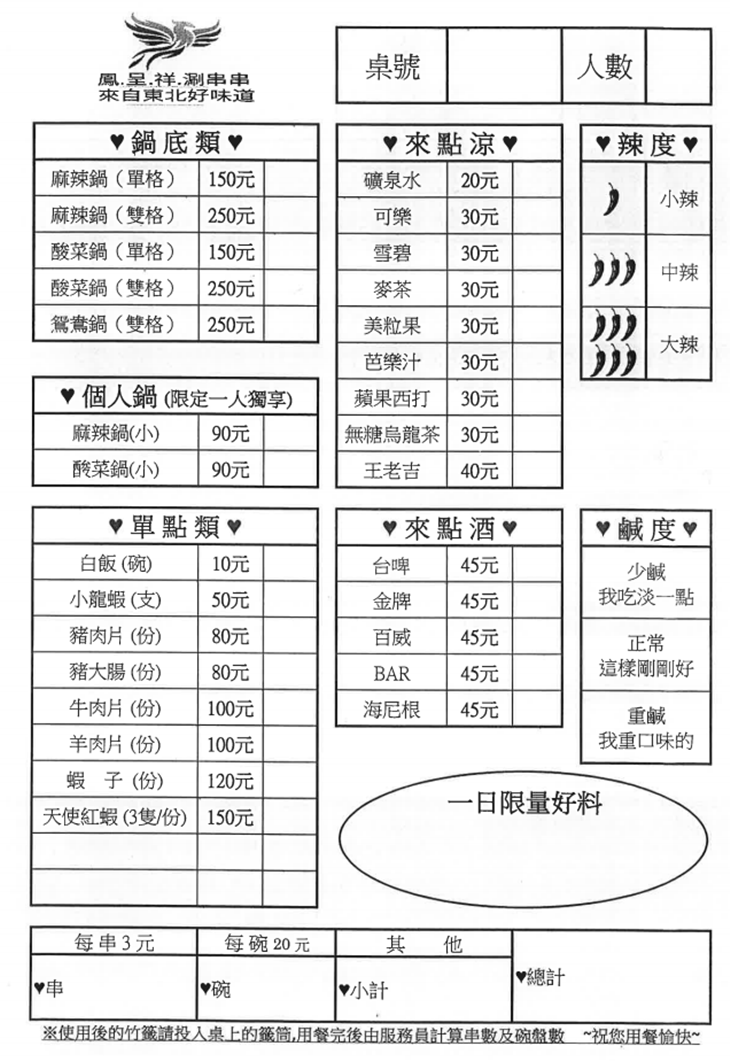 鳳呈祥涮串串 MENU