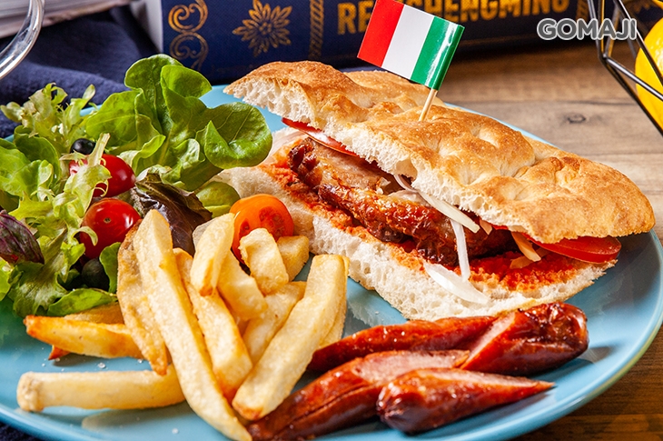 烤至酥香的佛卡夏麵包,交織著雞肉的鮮甜,上頭覆蓋了些許秘製醬汁,微甜微鹹的風味,吃起來濕潤又不失脆度的口感,美味獨樹一格!