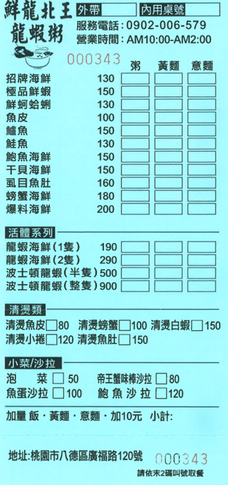 〝好鮮 ~ 好鮮 ~ 美味就趁新鮮!〞位於桃園市八德區廣福路上的【鮮龍北王龍蝦粥】,在當地擁有超高人氣且廣受顧客好評。其魅力並非是裡頭藏著重量級巨星,而是他們家的料理 - 天然ㄟ尚青!