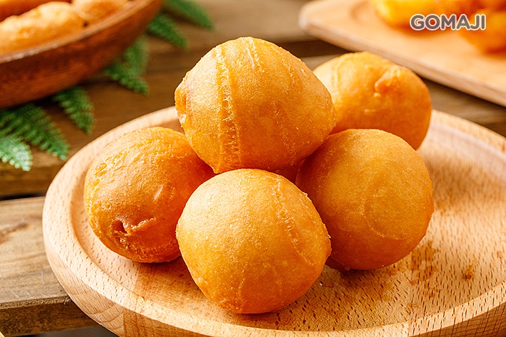 圓潤脆香的外皮,裡頭透著漂亮的橘紅色澤,輕咬一口,外酥內軟、富有嚼勁,非常可口!最後淋上甜甜的煉乳醬提香,簡單的美味卻讓人吃幾顆都吃不膩 ~