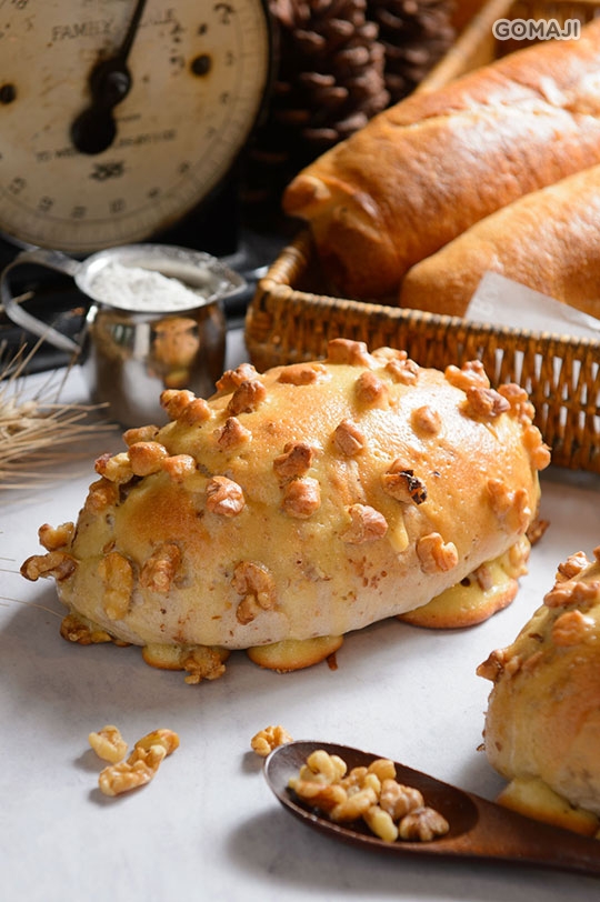 核桃含蛋白質與不飽和脂肪酸,有益身體營養;墨西哥奶酥脆皮和柔軟的麵包,微甜香醇!