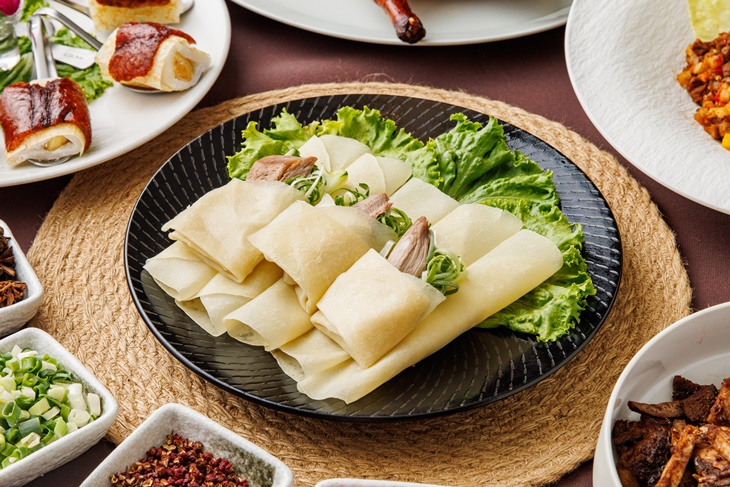 烤鴨肉質軟嫩紮實,裹上醬汁後再來一口,鹹香微甜的醬汁更是把柔嫩的肉質襯托的美味極致 ~ 再裹上特製捲餅皮,多層次的口感讓老饕也醉心萬分!