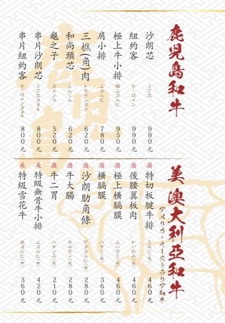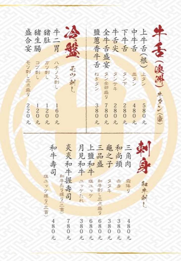 ▼餐點提供以日式炭火燒肉料理為主。有請在料理界擁有十多年經驗的日本師傅親自跨海坐鎮,透過細膩刀工及特調醬汁,完美演繹日本正宗燒肉風味與新鮮肉質的美味。