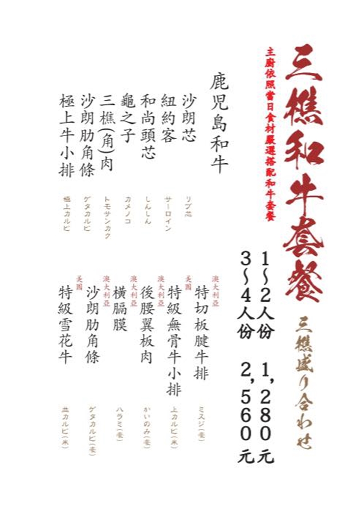 | 三樵和牛套餐(3-4人份)