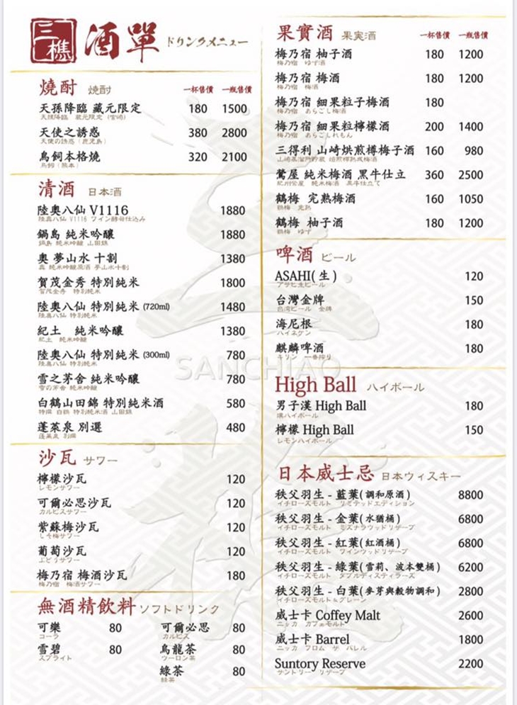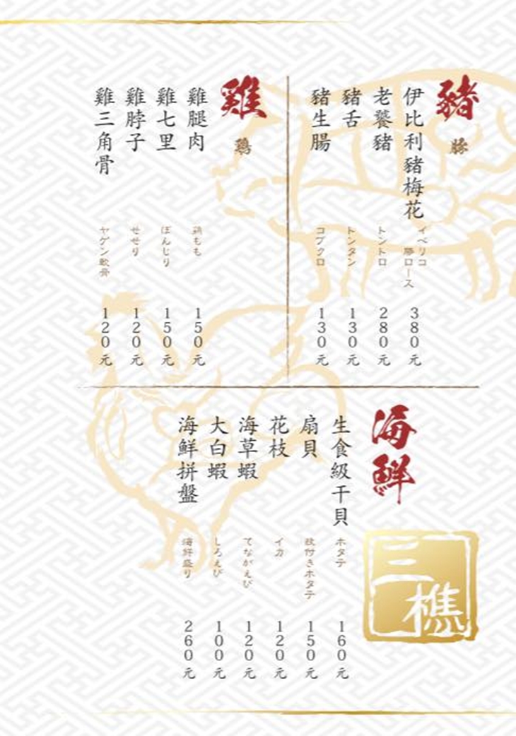 三樵炭火燒肉 MENU
