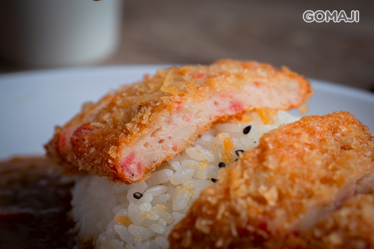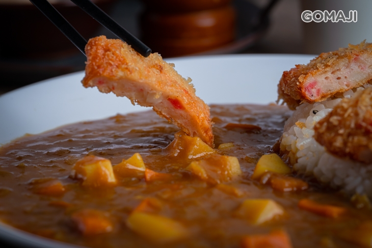 使用新鮮蝦子入料特製而成的蝦排,炸得金黃香酥,搭配咖哩一同享用,咀嚼脆香涮嘴的麵衣與濃郁咖哩的香氣,裏頭彈牙的餡料帶有蝦的鮮香與甘甜,獨特的魅力讓人難以招架!