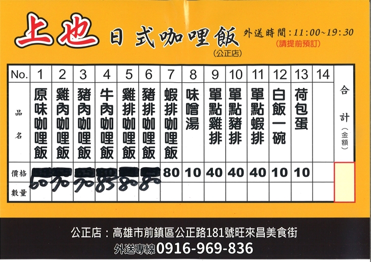 上也日式咖哩飯(小港店)