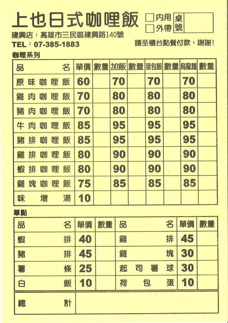 上也日式咖哩飯(建興店)