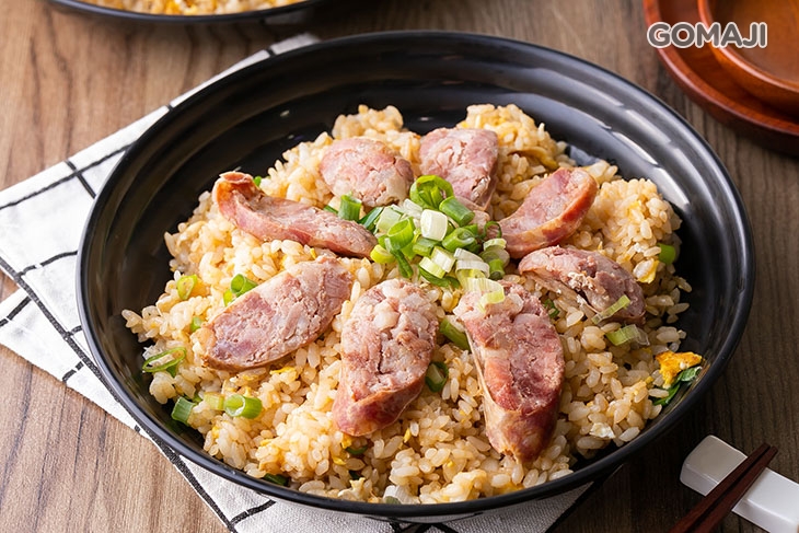 炒飯粒粒分明,口感香Q,一端上桌就能聞到陣陣香氣,加入脆彈美味的香腸平鋪於上方,宛如花朵般的擺法讓整盤炒飯看起來更好吃,鹹香的好滋味讓人一吃就愛上!