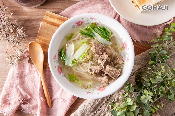 店家每日文火慢燉的清蒸牛肉麵湯頭,是由數種中藥材熬製而成,澄澈透亮的湯水入口後盡是清香甘醇,燉得極嫩的牛肉被湯頭精華充滿,咬下後滿溢的湯汁便爆發在舌尖,簡單健康的調味,讓牛肉最原始的肉香鮮甜展現無遺,馥郁香醇的滋味讓人回味無窮!