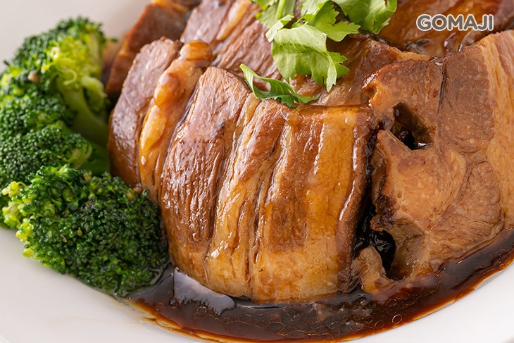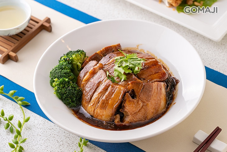 燉得入味的梅干扣肉,使用肥瘦比例恰到好處的豬五花悉心燉滷,鹹香醇厚的琥珀色醬汁,均勻上色至豬五花肉上,取一片入口品嚐,軟嫩不爛的肉質以及入口即化的油花有著豐厚的肉香,滷汁醇香的底蘊與肉的原味搭配得剛好,共譜出無敵的美味!
