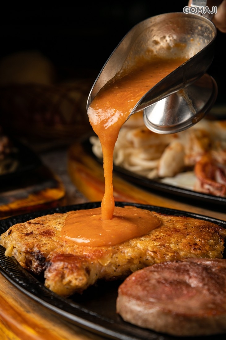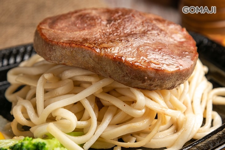 來到店裡不可不點 - 嚴選沙朗牛排,一端上桌便香氣十足,表面帶著焦香,透過鐵盤熱度緊緊鎖住了肉質精華,每一口都鮮美滑嫩,越咀嚼越能感受牛肉的彈牙韌性,讓人陶醉其中!