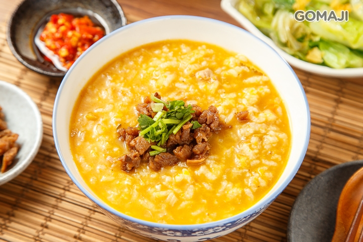 以生米細燉數小時的絕品南瓜粥,艷澤南瓜色一端上桌便讓人迎來馥郁甜美的南瓜香,趁熱入口,溫潤稠華的羹粥口感中,還感受得到米飯粒粒分明、入味不爛,南瓜特有的甜美交織出新穎的熱粥風味,讓人愛不釋口!