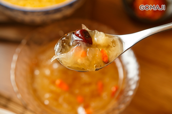 下足十小時功夫文火慢燉的冰糖銀耳,有如絲緞般柔滑的黏稠口感,有著冰糖淡淡宜人的甜味,銀耳脆口的口感為整體點綴不一樣的滋味,每一口都是沁涼舒暢的享受!
