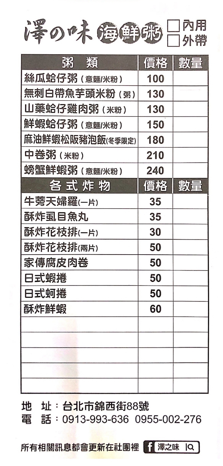 澤 之 味 海 鮮 粥