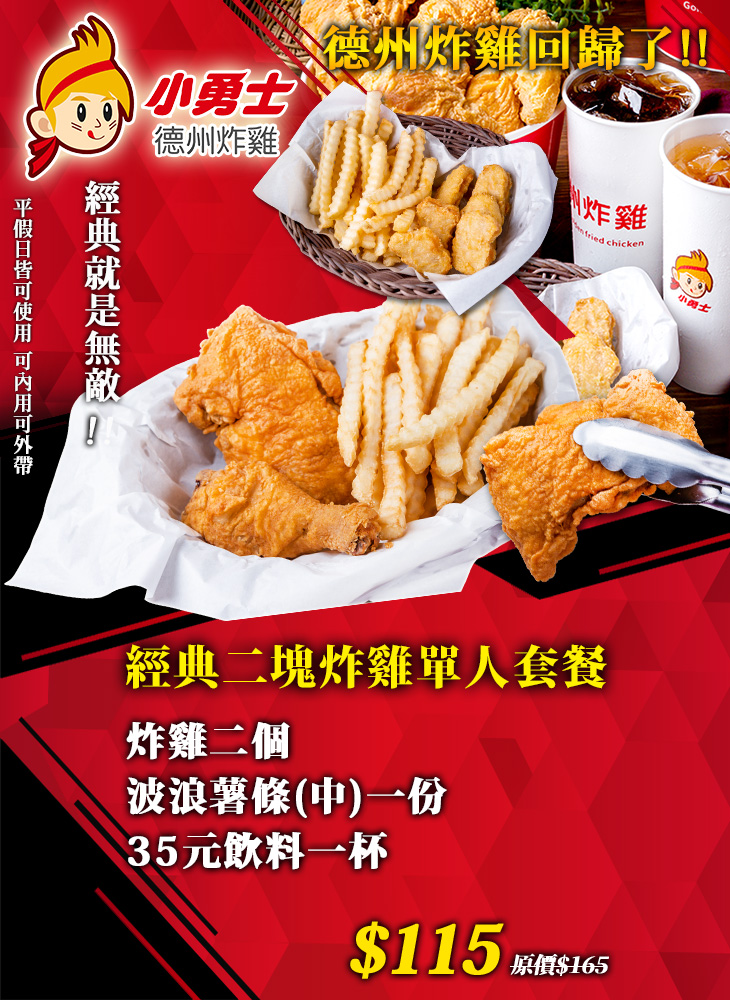 ➽經典二塊炸雞單人套餐