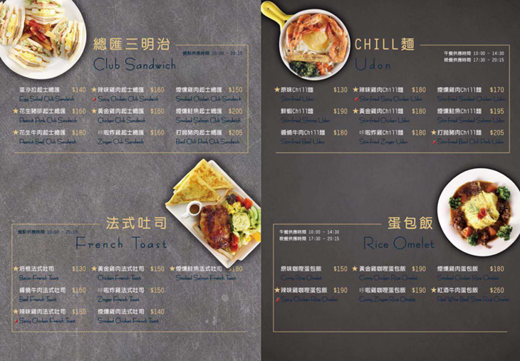餐點提供以早午晚餐/義大利麵/手做甜品/咖啡飲品等美味不失特色的料理為主。針對食材,嚴選好品質!針對組合,追求創意多變!針對口感,更是講究色香味俱全!現今,人們無論工作還是生活,無形之中都會因為一些小事情而產生壓力,唯有在生活中,找到適合自己放鬆的方式,才能讓壓得快喘不過氣的自己從中獲得一點救贖 ~ 【Chill Cafe】一同與您面對,期盼給您一處自在可喘息的空間 ~ 想要私人空間,不必再只有KTV、飯店選擇,可以透過【Chill Cafe】滿足您的需求!