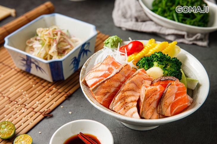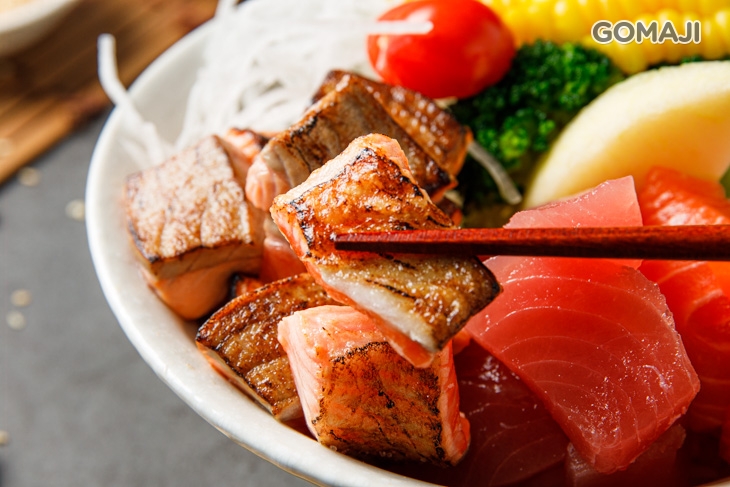 料多實在的丼飯,在飢腸轆轆之時最對味!精選品質新鮮、肉質極嫩的鮭魚肚,透過製燒料理,將鮭魚腹天然醇厚的鮮甜發揮得淋漓盡致,軟嫩細緻的肉質,入口便在齒唇間綻放陣陣甘美鮮香的魚香,搭配清新爽口的水煮蔬菜、香Q鬆軟的白飯一同享用,超開胃的美味讓人忍不住一口接一口!