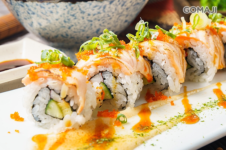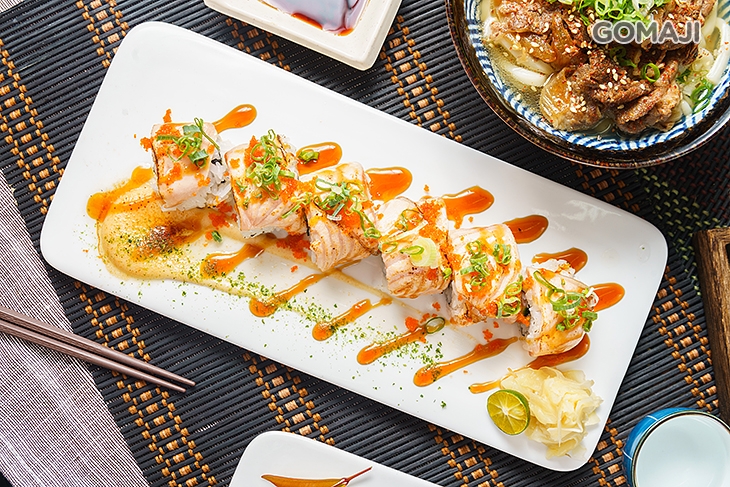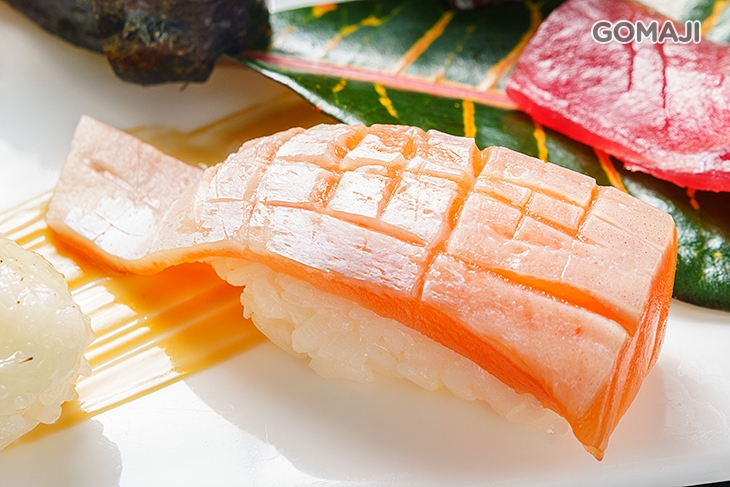 這盤炙燒鮭魚捲,絕美的顏色交錯讓人眼睛一亮!選用最新鮮的鮭魚,經過炙燒後帶有美麗色澤,再加上特製醬料,讓整體香氣更迷人!大口吃下,新鮮海味令人驚豔,細嫩肥美的鮭魚在口中慢慢化開,吃過都讚不絕口,可說是老饕必點的美味!