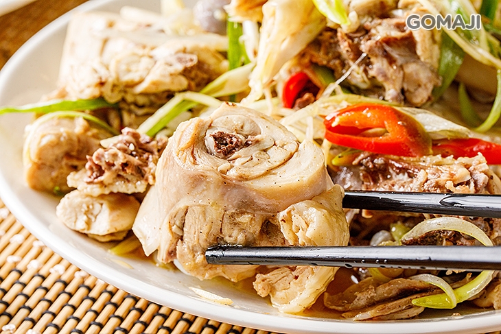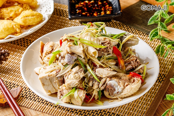 特選新鮮雞肉製成,外皮晶瑩剔透,肉質嫩中帶甜,散發著清淡的蔥油香氣,在口中形成迴盪不已的醇厚餘味,完美詮釋出不平凡的美味!