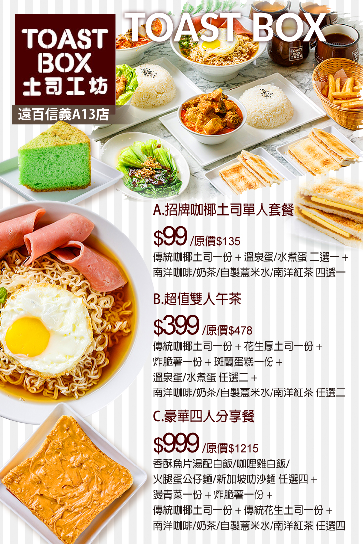 約會、聚餐首選!來【土司工坊(遠百信義A13店)】準沒錯喔!位於遠百信義A13內,以新加坡料理為主要特色的【土司工坊】,開幕至今,廣受顧客好評!