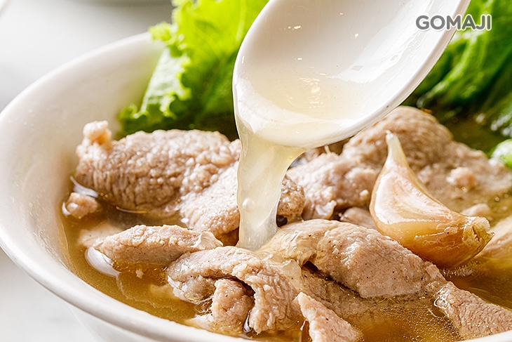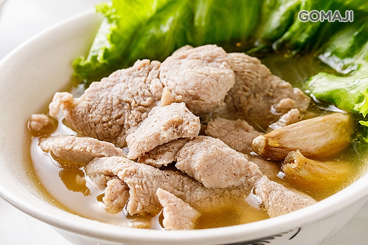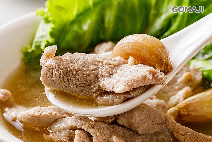 以肉骨茶湯為基底,加入大蒜、豬里肌,將滿滿的美味,用十足的愛與誠意帶給您!湯入口溫潤滑順,肉細嚐軟嫩不柴,用餐時刻來上一碗,暖心、暖胃!幸福感瞬間到位!