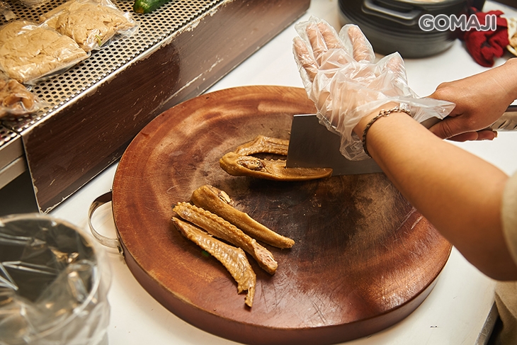 新鮮的鴨隻,透過師傅完美的刀工切塊滷製,老饕最愛的鴨頭與鴨脖部位,最能品嚐到鴨肉箇中的精隨,使用新鮮中藥材配方而出的獨門滷汁,與鴨肉的鮮甜馥郁緊緊交織,整體風味甘醇清香,細細咀嚼,還能感受到淡淡爽口的藥草香,讓人齒頰留香、沒齒難忘!