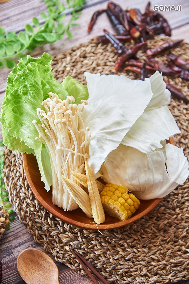 【高麗菜、金針菇、玉米筍、玉米】