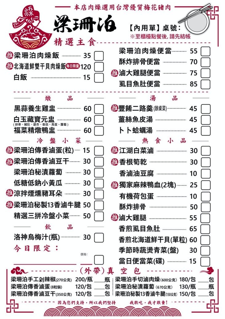 梁珊泊手切肉燥飯 MENU