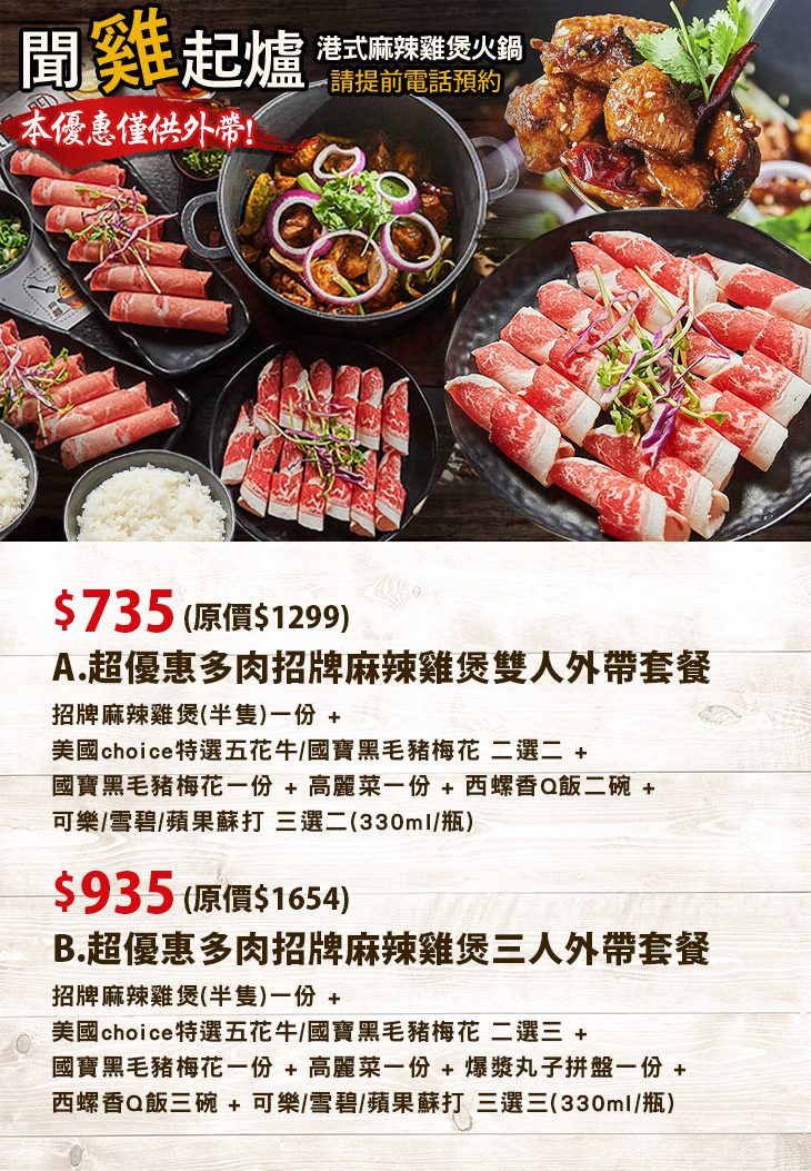 A.超優惠多肉招牌麻辣雞煲雙人外帶套餐