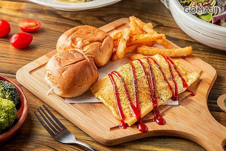 接下來這一道永遠不踩雷,不管是大朋友小朋友都最愛的歐姆蛋,切開後裡面包著滿滿的薯泥~再配上爆漿的奶油餐包還有現炸黃金脆薯,這個早晨也太幸福了~