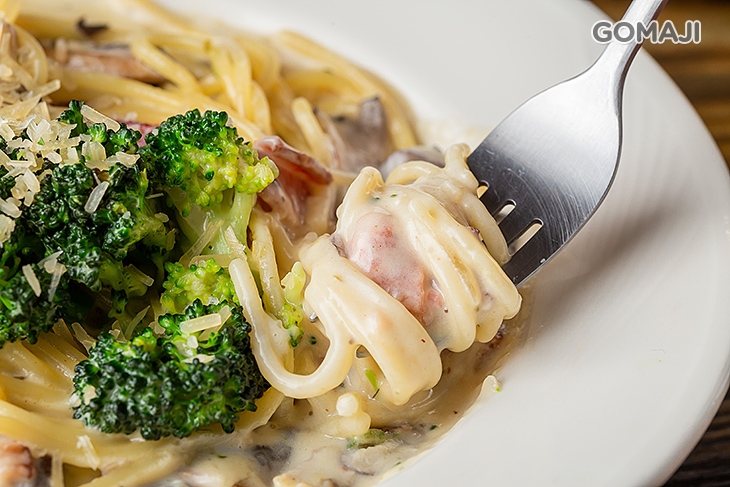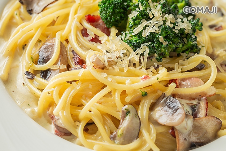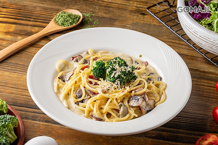奶香濃郁的特製白醬培根蘑菇義大利麵,端上桌,義式那最純粹、最迷人的風味緩緩撲鼻而來啊 ~ 入口麵條軟Q彈牙且不爛,配上培根蘑菇更加繽紛多彩!經典不敗的美味,人人吃過都說讚!