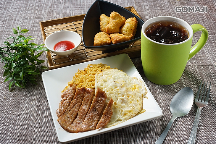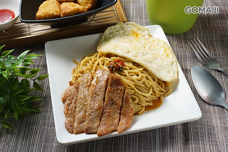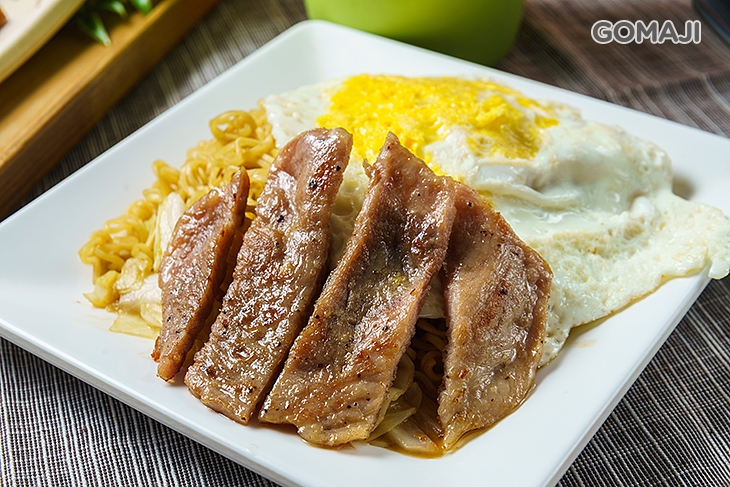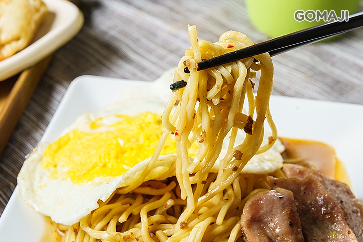 相較於一般麵條較細嫩的泡麵條,口感多了一分彈嫩,炒起來就是比較好吃!將炒得噴香的泡麵,點綴上鹹香多汁的豬排以及金黃荷包蛋,一端上桌,那色香味俱全的模樣便讓人垂涎三尺,非常美味!