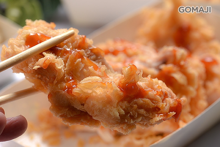 精選雞隻優質部位肉,簡單調味裹粉下鍋油炸至金黃,酥脆的外皮,有著鮮嫩多汁的肉質,大口咬下,香氣與美味湯汁流瀉而出,迷人可口,讓人吃過後都念念不忘的吮指美味,必嚐無疑。