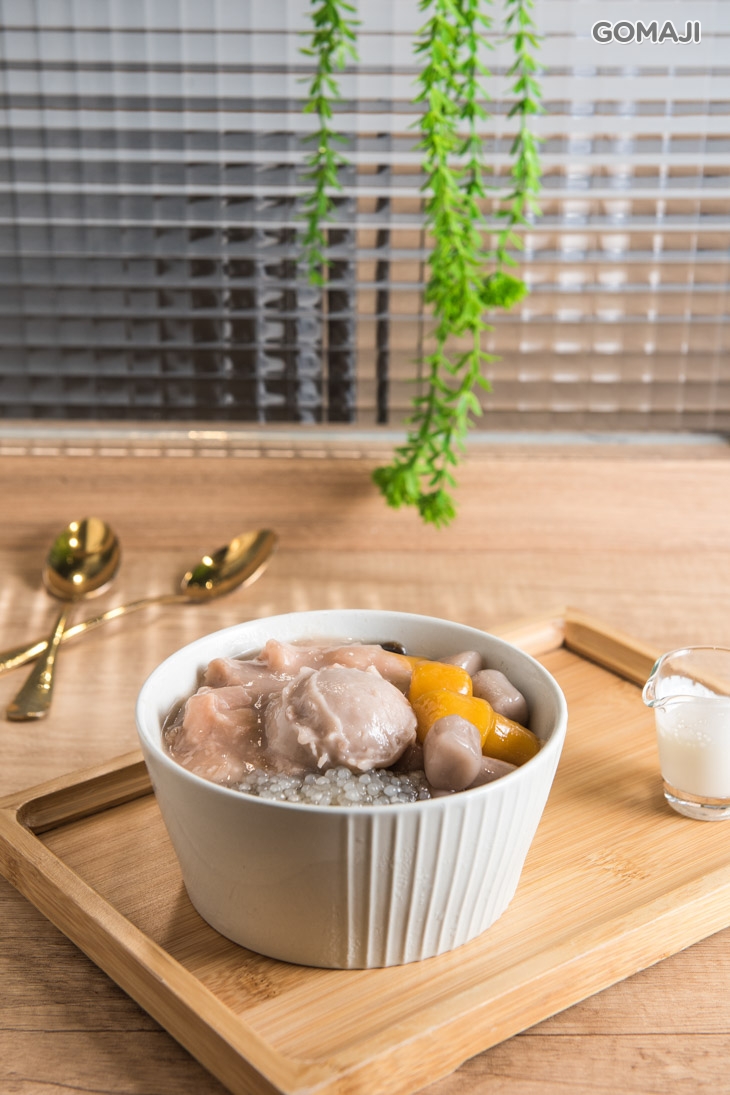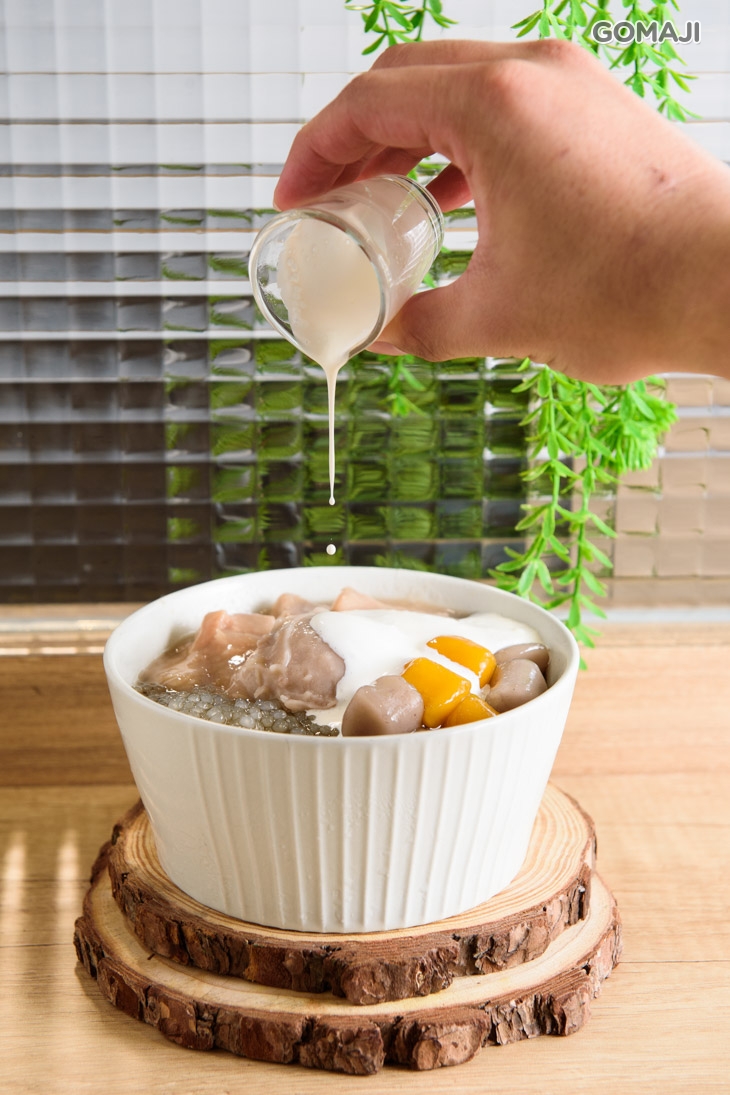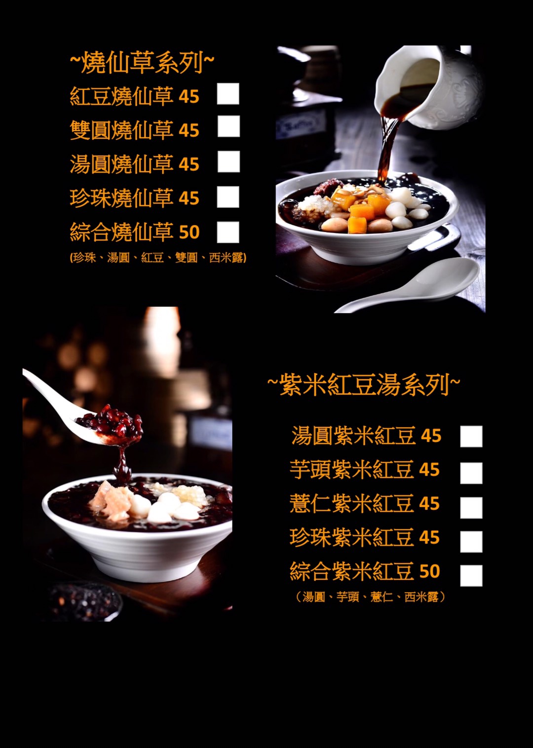 手工製作的嫩仙草,如黑珍珠般光滑透亮的質地,有著滑嫩可口的美味,咕溜的口感令人醉心,配上鮮甜的芋泥、芋圓等配料一起吃,還可以自己的喜好淋上鮮奶油,柔柔甜甜的好味道,就是最讓人無法抗拒的甜品了 ~