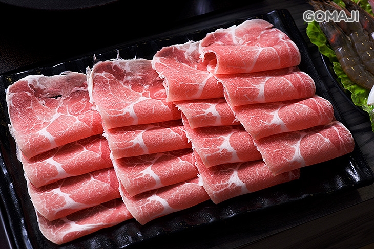 取新鮮豬隻的珍貴部位,因油花紋路分佈似梅花狀而得名,纖維細軟、色澤紅豔,肉質鮮嫩有彈性,油脂豐富卻不油膩,實為肉片上選!