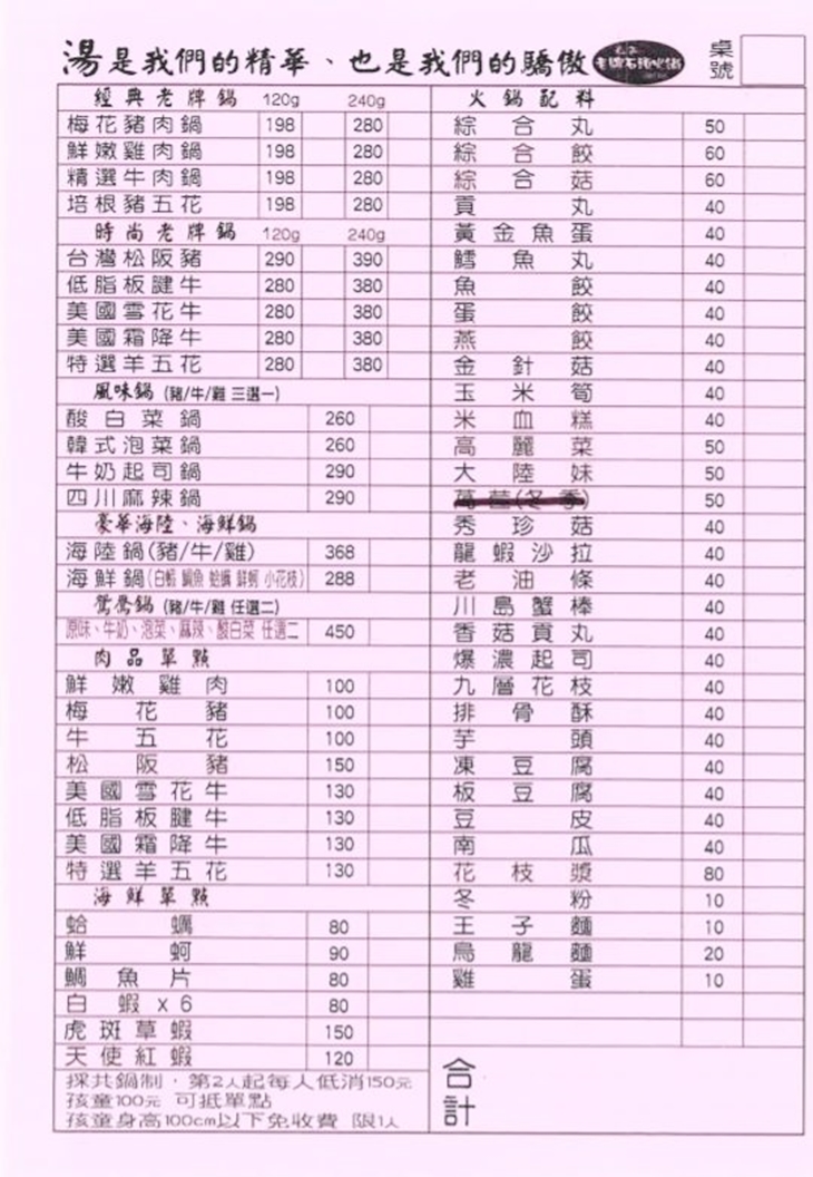 嘉義老牌石頭火鍋(湖口店) MENU