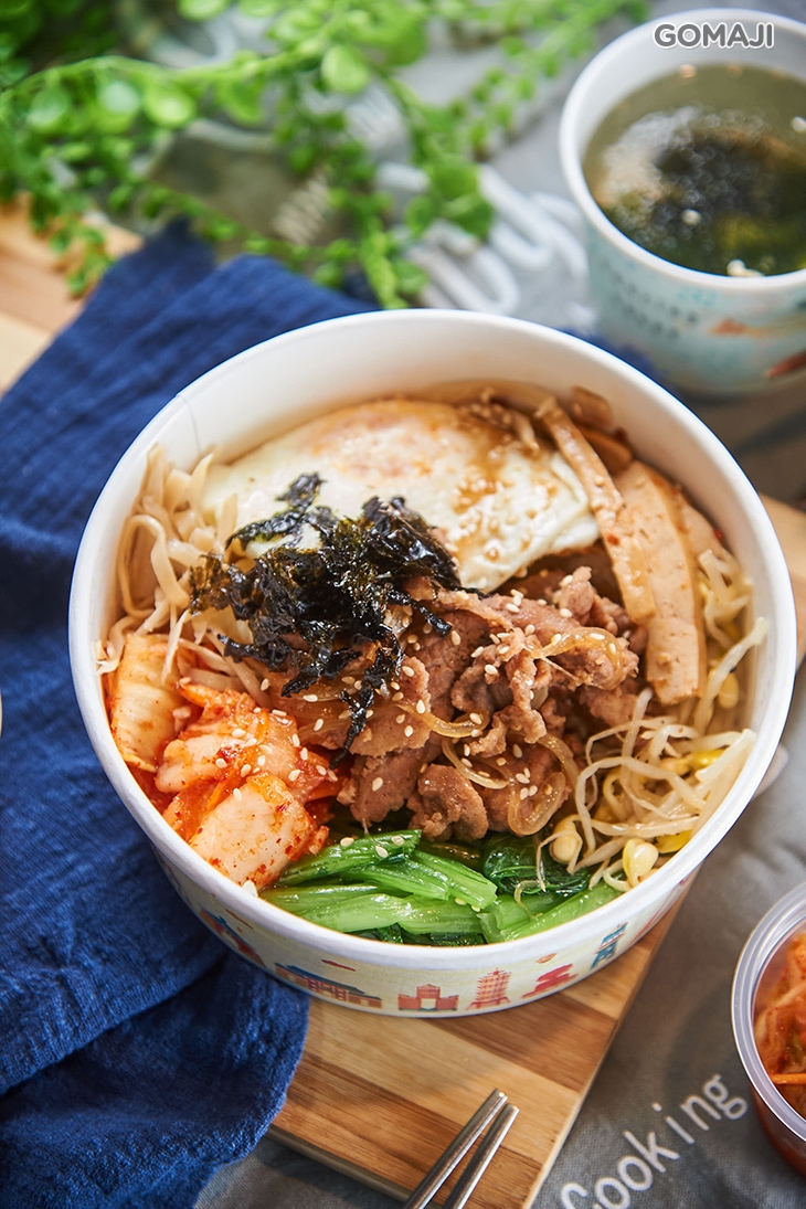 使用特製醬汁悉心醃漬入味的肥美豬肉片,與酸辣脆口的韓式泡菜、煎蛋,以及豆芽等時蔬一同拌入炊煮得粒粒香Q、口口鬆軟的白米飯之中,豪邁地攪拌,再大口享用,各樣食材的美味完美地結合在一塊,豬肉醇厚的肉香在齒唇間綻放,泡菜又酸又辣的風味在其中不斷刺激胃口,讓人不禁食指大動、胃口大開!