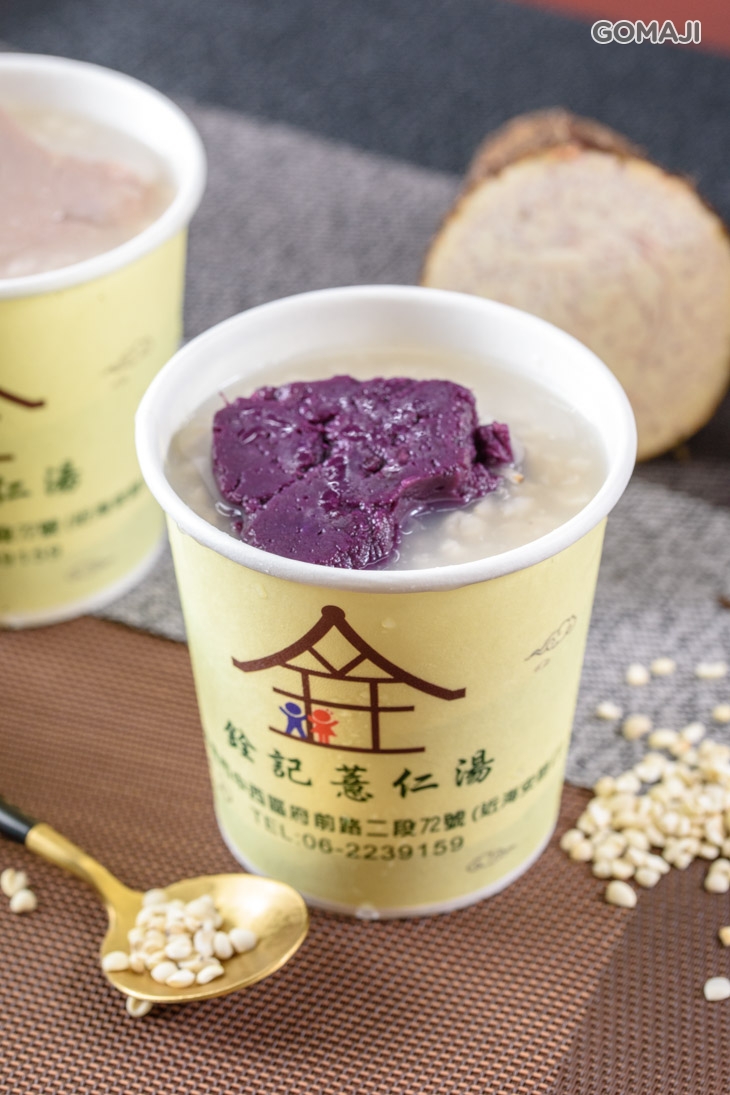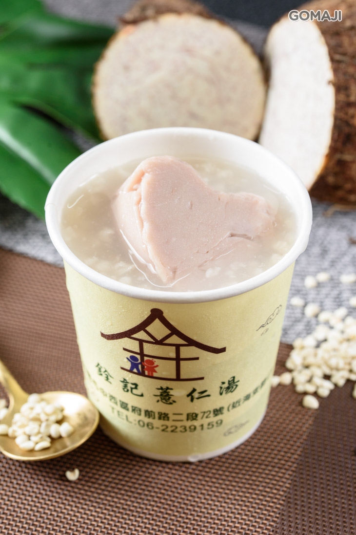 台灣在地產的新鮮芋頭,切塊細火慢燉,將每一塊芋頭都燉得入口即化,毫不手軟地放滿滿入薏仁湯汁中,芋頭獨到的香氣和薏仁的甘甜融合成一塊,每一口都是有著濃濃芋香,以及淡淡薏仁甜的絕妙饗宴!