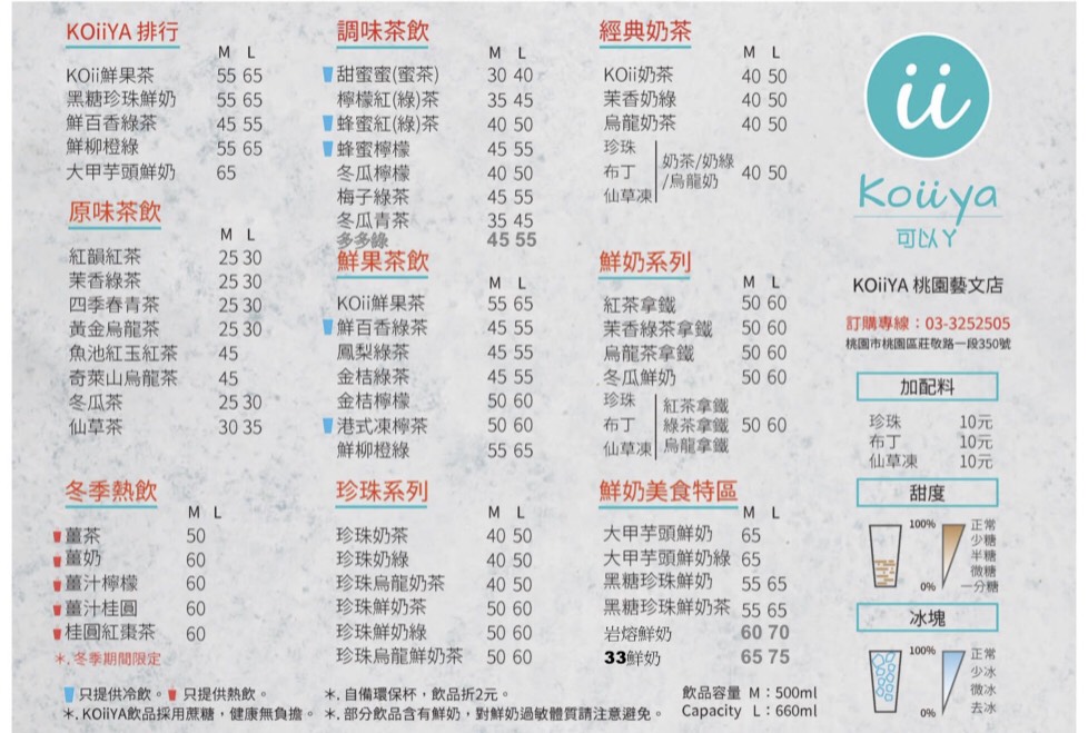 [koi] 音近「可以」 日文為【恋】 [こい],中文為戀愛的意思,手搖飲料讓這世界一切變得很可以ㄚ!簡單的理念,蘊含了幸福的涵義,不僅品牌理念令人印象深刻,店內飲料的製作過程也相當講究細心,無論是一杯純粹的茶飲,或是加入鮮奶調配而成的風味飲品,都讓人感受到如戀愛一般甜蜜的感覺,非常可以ㄚ!