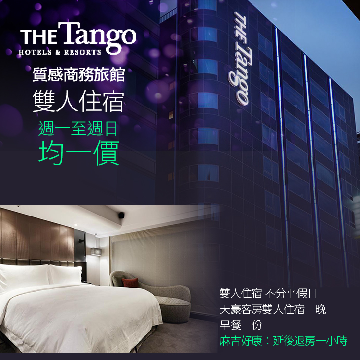 請您放慢步伐、緩和匆忙急促的心,跟著THE TANGO的腳步,尋找專屬於您自己的時尚心旅!位在松山區復興北路上的【天閣酒店 台北復興館】,傳承TANGO跨界美學,在科技與時尚中光鮮交融,在新世代無暇服務的新思維裡再次突破!