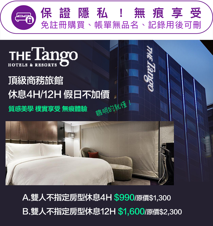 請您放慢步伐、緩和匆忙急促的心,跟著THE TANGO的腳步,尋找專屬於您自己的時尚心旅!位在松山區復興北路上的【天閣酒店 台北復興館】,傳承TANGO跨界美學,在科技與時尚中光鮮交融,在新世代無暇服務的新思維裡再次突破!
