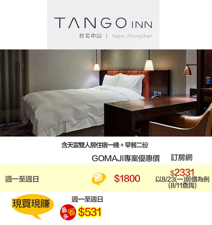 【Tango Inn天雲旅棧 台北中山】感謝麻吉們熱烈搶購,已全數賣光光。
