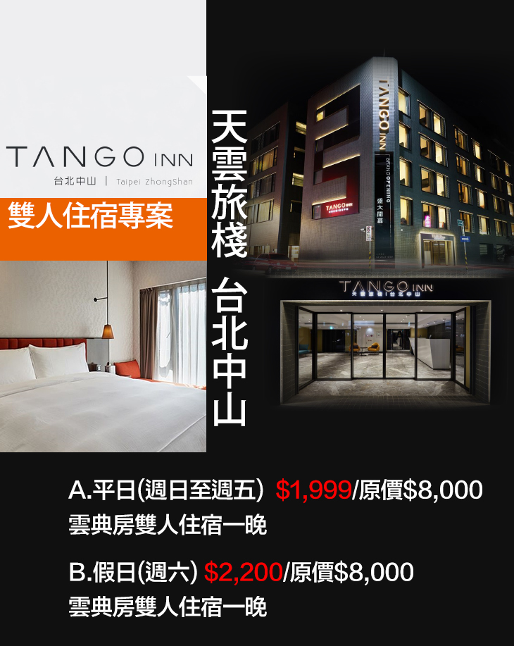 【Tango Inn天雲旅棧 台北中山】感謝麻吉們熱烈搶購,已全數賣光光。