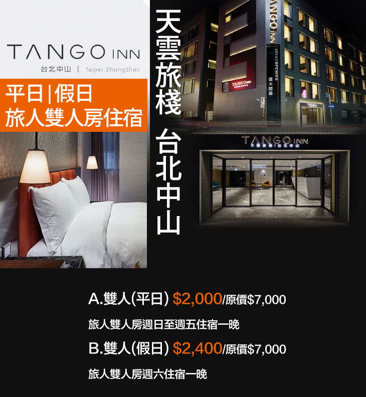 【Tango Inn天雲旅棧 台北中山】感謝麻吉們熱烈搶購,已全數賣光光。